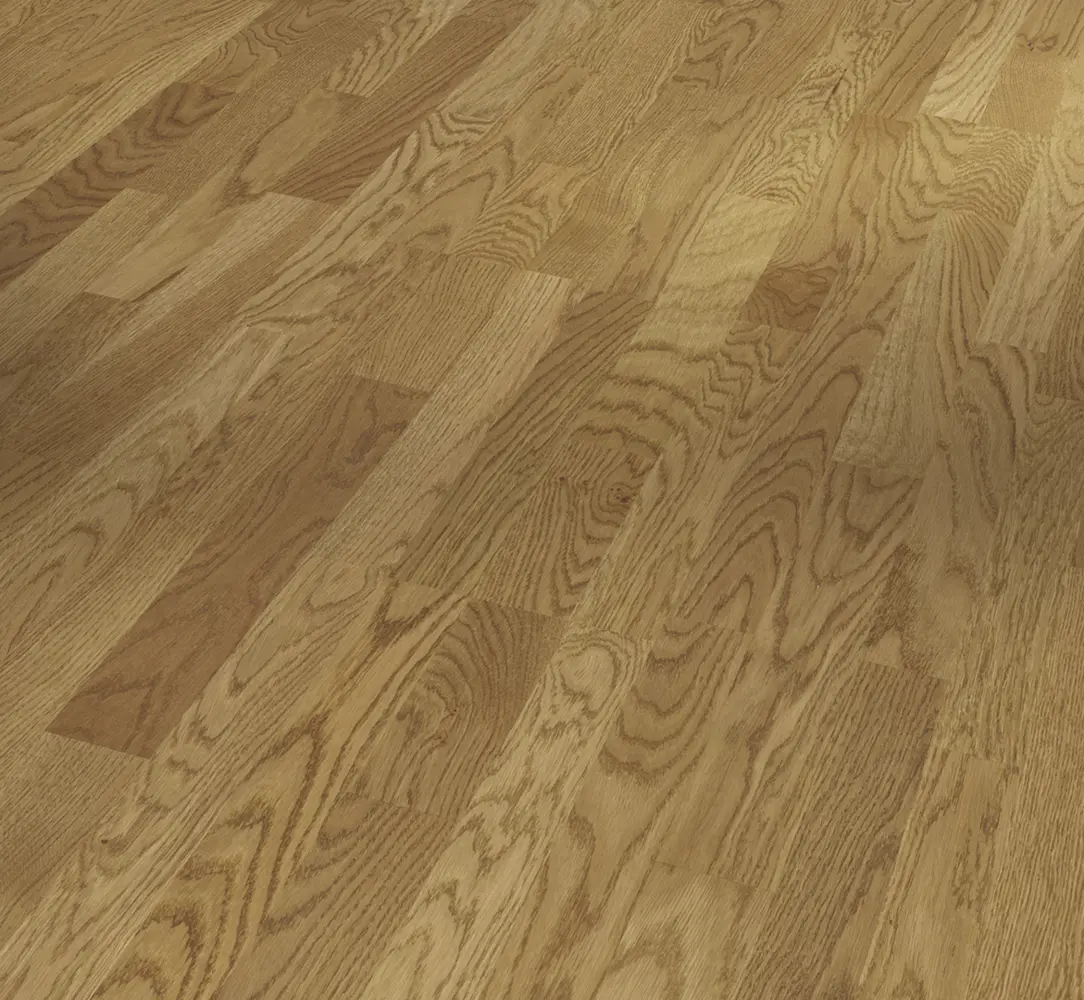 Der Parador Classic 3025 Eiche Malbec natur ist ein hochwertiger Parkettboden im Schiffsboden-Design, der sich durch seine natürliche Optik und helle Farbgebung in Beige auszeichnet. Gefertigt aus Eichenholz, überzeugt dieses Fertig-Parkett mit einer dreischichtigen Konstruktion und einer lackierten Oberfläche, die für Strapazierfähigkeit und ein angenehmes Laufgefühl sorgt.