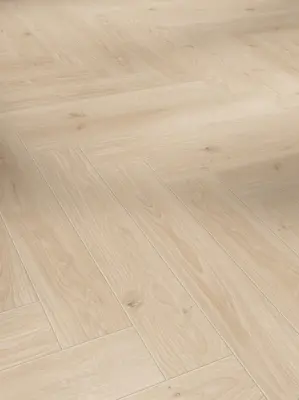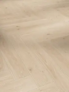 Der Parador Trendtime 3 Laminatboden in Eiche Studioline überzeugt mit seiner naturmatten Oberfläche und einer eleganten Landhausdielen-Optik. Die helle, beige Farbgebung verleiht jedem Raum eine freundliche und moderne Atmosphäre. Dank der naturgetreuen Synchron-Struktur fühlt sich die Oberfläche besonders authentisch an, während die vierseitige Fase die Wirkung einzelner Dielen betont.