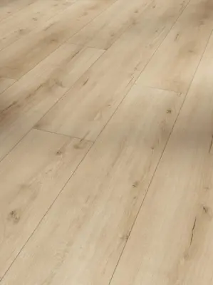 Der Parador Trendtime 6 Laminatboden in der Ausführung Eiche Loft pure bringt ein helles, modernes Wohngefühl in Ihre Räume. Die naturgetreue Eichendekor-Optik und die synchron geprägte Oberfläche verstärken den authentischen Charakter und sorgen für eine stilvolle Landhausdielen-Anmutung. Die großzügige Langdiele unterstreicht den modernen Look und lässt Räume optisch weiter wirken.