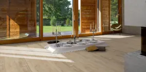 Mit einer Dielenlänge von 2200 mm und einer Breite von 243 mm präsentiert sich der Boden im Format Langdiele. Der beige Farbton fügt sich harmonisch in verschiedene Einrichtungsstile ein und verleiht dem Raum ein freundliches Erscheinungsbild. Die Rutschhemmung nach R9 sorgt für zusätzliche Sicherheit im Alltag. Der Träger besteht aus hochwertigem HDF-Material, das für Stabilität und Langlebigkeit steht.