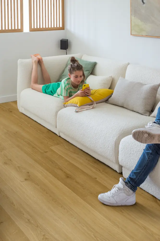 Der Boden ist sowohl privat als auch gewerblich nutzbar (Nutzungsklasse 23/33) und bietet dank der 4-seitig gepressten Fasen ein attraktives Verlegemuster. Der integrierte Trittschallschutz sorgt mit 21 dB für eine angenehme Geräuschdämpfung.