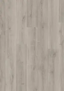 Erleben Sie mit dem Quick-Step Hydroseal Naturboden Capture in Eiche gebürstet grau einen modernen Designboden, der höchste Ansprüche an Ästhetik und Funktionalität erfüllt. Die authentische Holzoptik in mittlerem Grauton verleiht Wohnräumen, Büros sowie Küchen und Badezimmern ein stilvolles, zeitloses Ambiente. Das langformatige Dielenformat im Landhausstil und eine synchron-geprägte Oberfläche sorgen für eine realistische Haptik und ein edles Erscheinungsbild.