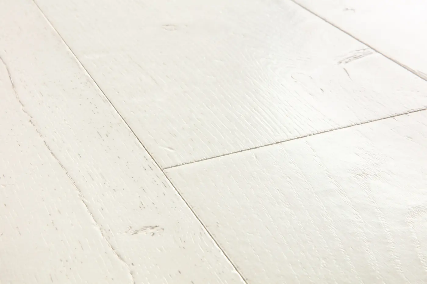 Der Quick-Step Hydroseal Naturboden Capture Eiche gestrichen weiß bietet eine authentische Holzoptik im hellen Landhausdielen-Stil und überzeugt durch seine rustikale Ausstrahlung. Die detailgetreu synchron geprägte Oberfläche betont das natürliche Eichen-Design und verleiht jedem Raum eine freundliche, einladende Atmosphäre.