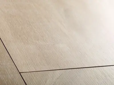 Mit dem Quick-Step Hydroseal Naturboden Classic in Eiche Havana Natur mit Sägeschnitten genießen Sie die authentische Ausstrahlung einer Landhausdiele im modernen Design. Die helle Holzoptik und die fein abgestimmte Holzstruktur verleihen jedem Raum eine lebhafte, natürliche Atmosphäre. Das innovative Uniclic-System ermöglicht eine schnelle und einfache Verlegung. Durch die spezielle Hydroseal-Beschichtung bleibt der Boden wasserresistent und eignet sich auch für Badezimmer und Küchen.