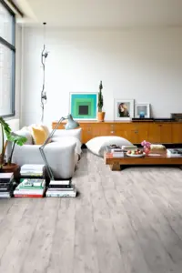 Mit Quick-Step Impressive Beton hellgrau entscheiden Sie sich für einen langlebigen, pflegeleichten und modernen Designboden, der atmosphärische Akzente setzt und den Alltag mit innovativer Technik bereichert.