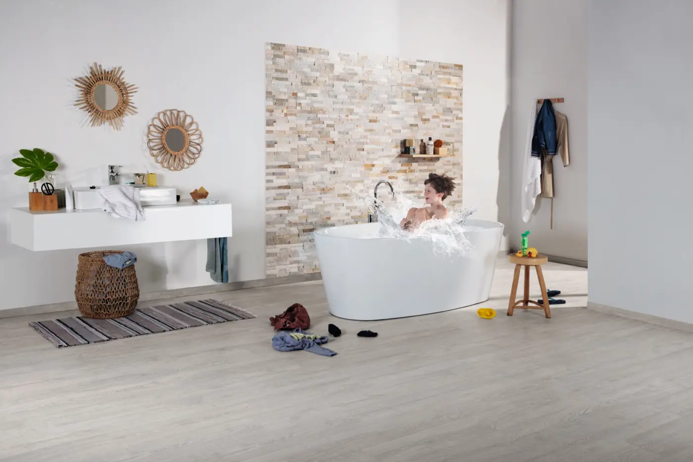 Die innovative Hydroseal-Technologie macht den Designboden besonders wasserresistent – optimal für Feuchträume wie Küche und Badezimmer. Die 4-seitige Fase unterstreicht das authentische Dielenformat, während die hochwertige HDF-Trägerschicht für Formstabilität sorgt. Mit seiner antistatischen Oberfläche, der Rutschhemmung R9 und einer hohen Lichtbeständigkeit bietet dieser Boden nicht nur ansprechendes Design, sondern auch einen zuverlässigen Nutzungskomfort.