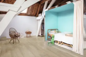 Der Designboden eignet sich für Wohn- und Schlafzimmer, Homeoffice, Kinderzimmer sowie gewerbliche Bereiche. Mit seiner Nutzungsklasse 32 im gewerblichen und 23 im privaten Bereich erfüllt er höchste Anforderungen an Strapazierfähigkeit und Langlebigkeit.