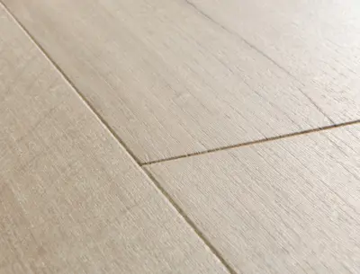 Der Quick-Step Hydroseal Naturboden Impressive (Ultra) Eiche soft hell überzeugt mit einer authentischen Holzoptik und einer lebhaften Oberflächenstruktur, die dem Raum eine natürliche und freundliche Atmosphäre verleiht. Das helle Eichen-Dekor mit beige Farbton im Landhausdielen-Stil macht diesen Designboden zu einer vielseitigen Wahl für Wohn- und Arbeitsbereiche.
