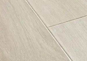 Der Quick-Step Hydroseal Naturboden Majestic Eiche Woodland grau hell mit der Designbezeichnung MJ3547 überzeugt durch eine authentische Holzoptik in einem hellen Grauton, die jedem Raum ein stilvolles, modernes Ambiente verleiht. Durch das großzügige XXL-Format der Dielen entsteht ein besonders großzügiges und elegantes Raumgefühl. Die 4-seitige Fase sorgt für eine naturgetreue Landhausdielen-Optik und unterstreicht den hochwertigen Charakter dieses Bodens.