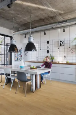 Der Quick-Step Hydroseal Naturboden Majestic Eiche Woodland Natur MJ3546 überzeugt durch seine authentische Holzoptik und verleiht jedem Raum ein elegantes und naturgetreues Ambiente. Die Oberfläche in edler Eichen-Optik und sanftem Beigeton sorgt für eine wohnliche Atmosphäre und unterstreicht den Landhausstil mit einer ruhigen, natürlichen Wirkung.