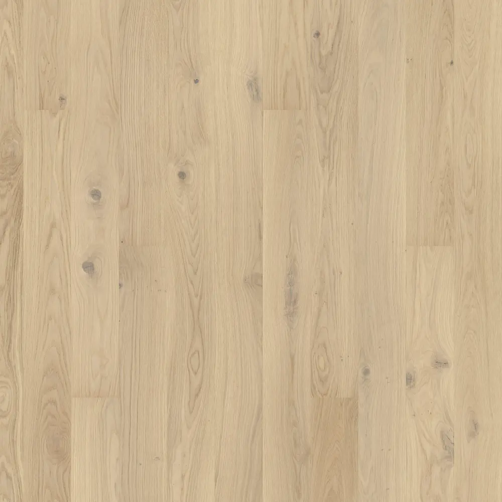 Dank der gebürsteten Oberflächenstruktur kommt die natürliche Textur der Eiche besonders gut zur Geltung. Der Boden ist ultramatt-lackiert, was ihm eine elegante Optik verleiht und gleichzeitig für Langlebigkeit sorgt.