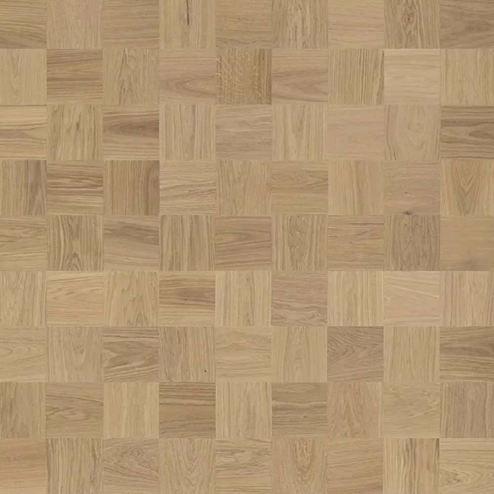 Erleben Sie die exquisite Qualität des Tarkett Noble EICHE SOHO Mosaik groß Fertig-Parketts, Modellnummer 7806012. Dieses hochwertige Parkett wird von Tarkett, einem der führenden Hersteller in der Bodenbelagsbranche, angeboten und gehört zur "Noble"-Kollektion. Es besticht durch seine lebhafte Sortierung und den eleganten Beigeton, der jedem Raum eine warme und einladende Atmosphäre verleiht.