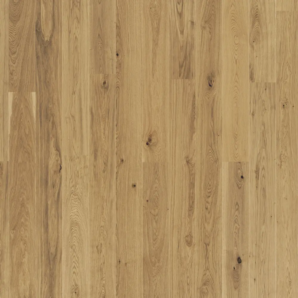 Entdecken Sie den Tarkett Pure EICHE RUSTIC PLANK 1 Stab Parkettboden, ein hochwertiges Fertig-Parkett mit dreischichtigem Aufbau, das sich durch seine robuste Konstruktion und elegante Optik auszeichnet. Dieses Parkett ist in einem rustikalen Eichen-Design gehalten, das eine warme und einladende Atmosphäre schafft.