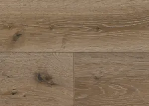 Der ter Hürne Avatara Grand Edition Eiche Lyra Designboden vereint hochwertige Materialien mit anspruchsvollem Design. Die authentische Holzoptik in dunklem Braun, akzentuiert durch eine markante Holzstruktur, verleiht jedem Raum ein warmes und wohnliches Ambiente im Stil einer Landhausdiele. Das Langdielenformat und die umlaufende V-Fuge sorgen für eine elegante und großzügige Optik.