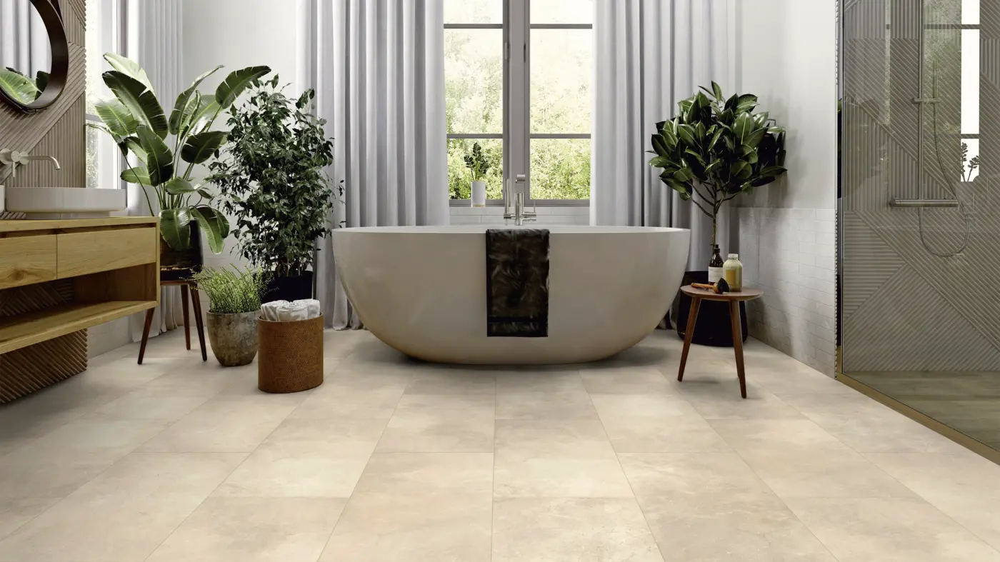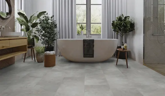 Der Designboden "Stein Dorsum" aus der Avatara Kollektion von ter Hürne überzeugt mit moderner Steinoptik in einem hellen Grauton und einer authentischen Steinstruktur. Das Fliesenformat verleiht jedem Raum ein großzügiges und ruhiges Erscheinungsbild. Dank innovativem Klick-System LOCKitEASY gestaltet sich die Verlegung besonders einfach und effizient.