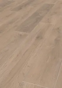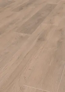 Die Dielen im Standardformat (195 mm breit, 1288 mm lang, 8 mm stark) sind ideal für den Einsatz auf Warmwasser-Fußbodenheizungen geeignet. Dank der antistatischen Eigenschaften und der für Stuhlrollen geeigneten Oberfläche bietet dieses Laminat hohen Komfort im Alltag. Das HDF-Trägermaterial sorgt für Langlebigkeit und Formstabilität. Mit dem Dekor „Eiche French Bistro“ wird jeder Raum stilsicher und freundlich gestaltet.