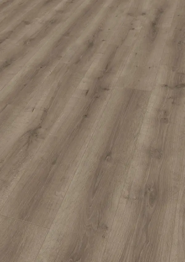 Der Laminatboden ter Hürne Classic Edition Eiche Scotch Saloon verbindet hochwertige Verarbeitung mit einer stilvollen, natürlichen Holzoptik in elegantem Grau. Die Landhausdiele im klassischen Design überzeugt mit einer lebhaften Maserung und einer matten Oberfläche, die dem Raum eine moderne und zugleich warme Atmosphäre verleiht.