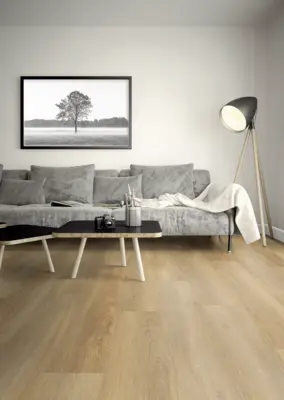 Erleben Sie die Qualität von Ter Hürne mit dem Rigid Vinylboden "Eiche Ella" in der Kollektion "Friends". Dieser Boden zeichnet sich durch ein ansprechendes Design in Holzoptik aus und ist ideal für verschiedene Einsatzbereiche wie Gewerbe, Homeoffice, Kinderzimmer, Küche, Schlafzimmer und Wohnzimmer geeignet. Mit seinem ruhigen Erscheinungsbild und dem Dekor in hellem Braun fügt er sich nahtlos in Ihre Raumgestaltung ein.