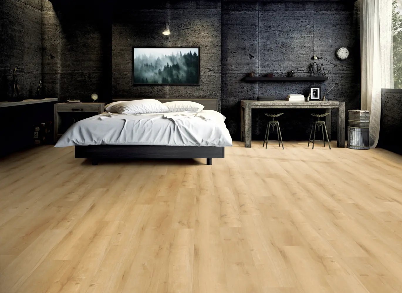 Der Vinylboden im Format einer Breitdiele bietet eine ruhige Erscheinung, ideal für verschiedene Einsatzbereiche wie Badezimmer, Gewerbe, Homeoffice, Kinderzimmer, Küche, Schlafzimmer und Wohnzimmer. Mit einer Nutzschicht von 0,30 mm und der Brandschutzklasse B fl-s1 ist der Boden sowohl im privaten als auch im gewerblichen Bereich geeignet.