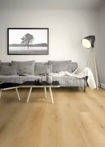 Entdecken Sie den ter Hürne Friends Eiche Paul Vinylboden. Dieses hochwertige Klebevinyl besticht durch seine authentische Holzoptik, die jedem Raum einen hellen und eleganten Touch verleiht.
