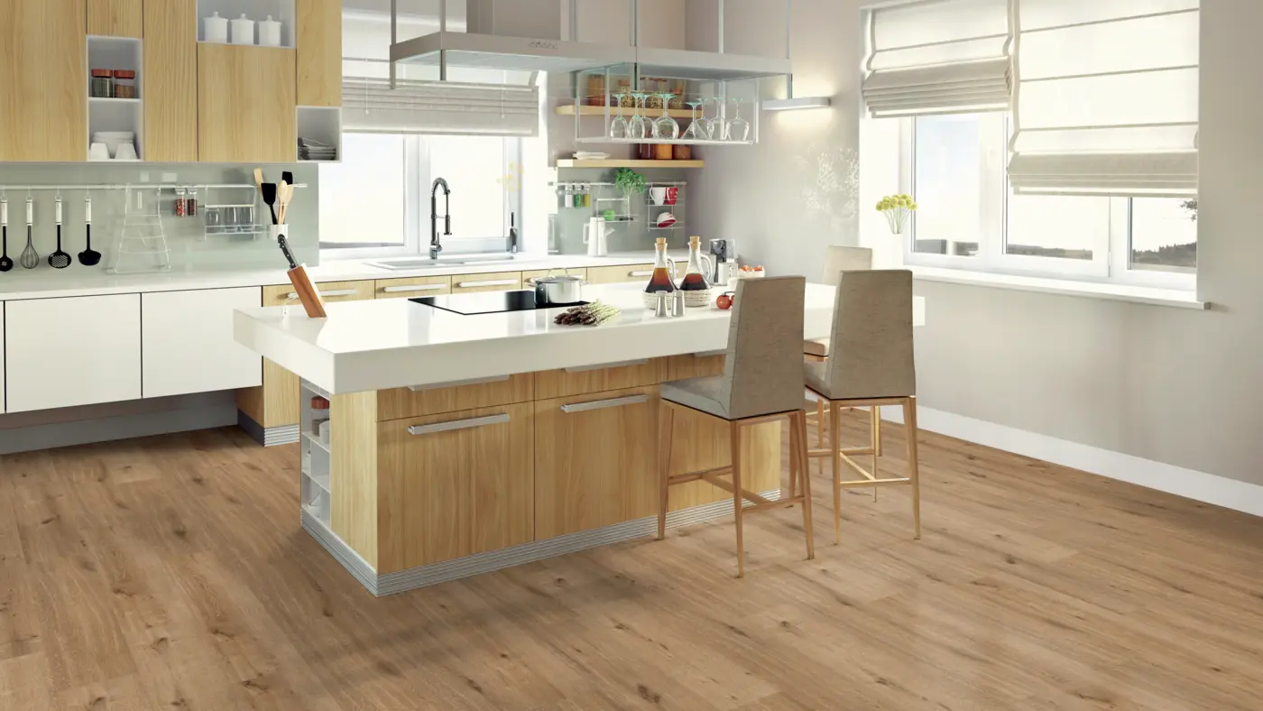 Entdecken Sie den hochwertigen Vinylboden von ter Hürne in der Dekor-Optik "Eiche Thomas", ein Produkt aus der Friends Kollektion. Dieser Bodenbelag bietet die natürliche Schönheit von Holzoptik kombiniert mit der Einfachheit und Haltbarkeit von Vinyl.