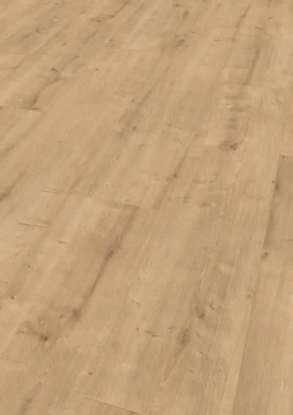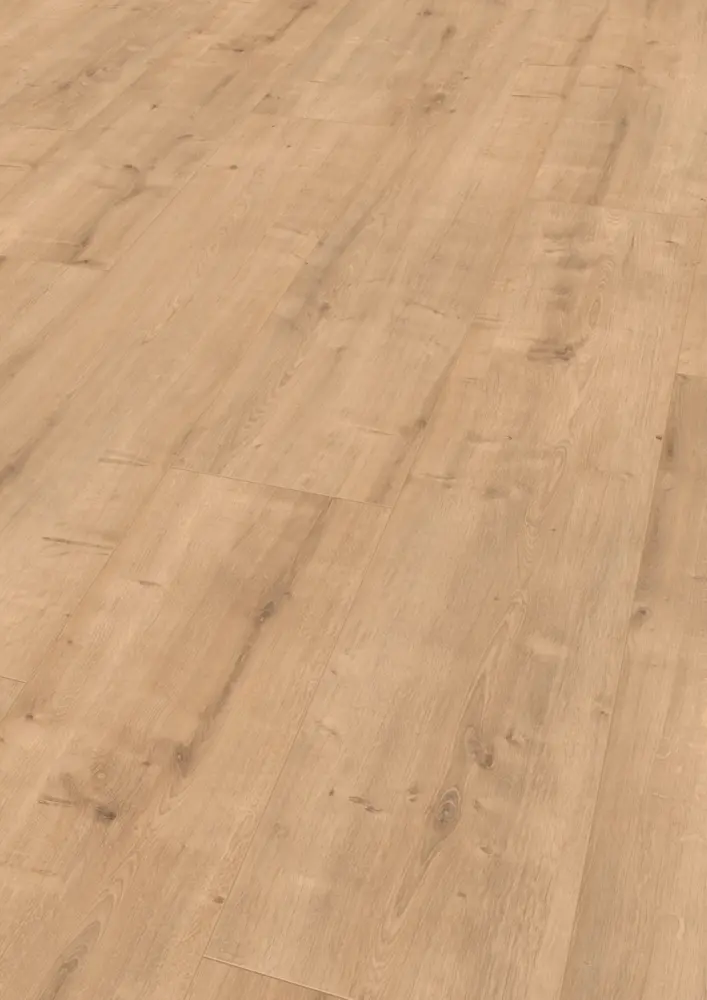 Der Laminatboden überzeugt durch seine hohe Strapazierfähigkeit und die Einstufung in die Abriebklasse AC5. Er eignet sich optimal für gewerbliche Bereiche ebenso wie für das Homeoffice, Wohn- und Schlafzimmer, Kinderzimmer sowie Küche. Die umlaufende 4-seitige Fase betont die Großzügigkeit der einzelnen Dielen und sorgt für ein harmonisches Gesamtbild. Lichtechtheit nach Skala 6 sorgt dafür, dass das Dekor auch bei intensiver Lichteinstrahlung lange brilliert.
