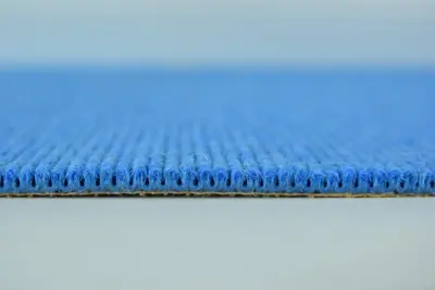 Erleben Sie den hochwertigen Tretford Interland 517 - Riviera Teppichboden. Dieser erstklassige Bodenbelag bietet eine Breite von 2 Metern und besticht durch seine stilvolle Schlingenstruktur und den hellen blauen Farbton.