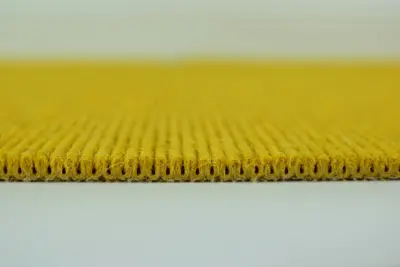 Die Fertigung erfolgt im Ondule-Verfahren und der Teppich ist mit Jute als Rückenmaterial ausgestattet, was zusätzliche Stabilität bietet. Hervorzuheben ist auch die hohe Licht-Echtheit, die auf der Skala 5 angesiedelt ist. Dies gewährleistet, dass die lebendige gelbe Farbe des Teppichs lange erhalten bleibt.