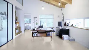 Der Wicanders Cork Essence Personality Moonlight Korkboden überzeugt durch seine moderne Steinoptik in hellgrauer Farbe und naturgetreuer Oberflächenstruktur. Das hochwertige Klick-System CORKLOC® sorgt für eine unkomplizierte und schnelle Verlegung, während der HDF-Träger und die integrierte Trittschalldämmung für Stabilität und angenehme Raumakustik stehen. Mit einer Aufbauhöhe von 10,5 mm und dem Format der Kurzdiele eignet sich dieser Boden sowohl für den privaten als auch für den gewerblichen Bereich. Der Boden bietet dank Nutzungsklasse 23/31 und einer robusten Oberfläche eine langlebige Lösung für vielfältige Einsatzbereiche. Geeignet für die Verlegung auf Warmwasser-Fußbodenheizungen und ausgestattet mit EPD-Zertifikat sorgt er für Komfort und Nachhaltigkeit im Wohn- oder Arbeitsumfeld.
