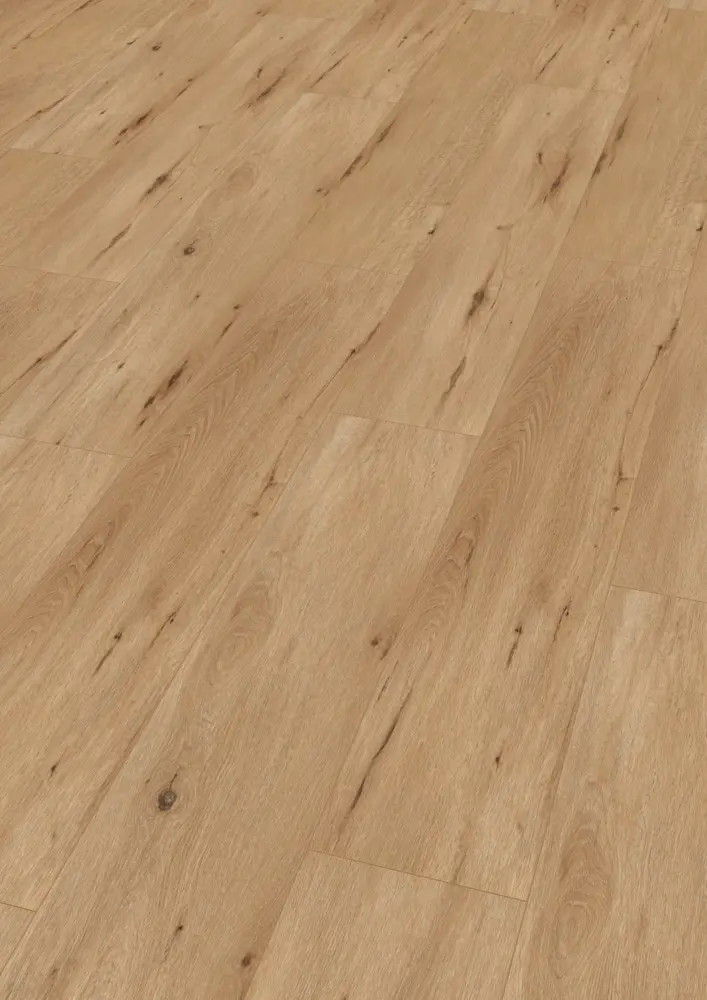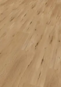 Der Boden hat eine Breite von 225 mm und eine Länge von 1522 mm, mit einer Stärke von 5,5 mm. Er verfügt über einen integrierten Trittschallschutz von ca. 19 dB und ist für Fußbodenheizungen mit Warmwasser bis zu einer Oberflächentemperatur von 27°C geeignet. Die Oberfläche ist mit Polyurethan (PUR) versiegelt und weist eine Rutschhemmungsklasse von R10 auf.