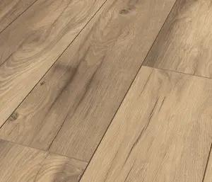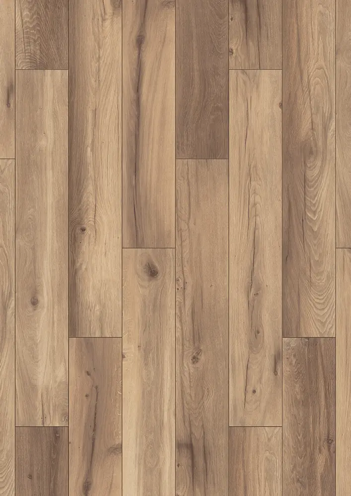 Der Ziro Aqualan Oak Mailand Designboden überzeugt durch seine authentische Holzoptik im natürlichen Eiche-Dekor und einem modernen braunen Farbton. Die Oberfläche im Landhausdielenstil mit spürbarer Holz-Struktur sorgt für ein lebendiges Erscheinungsbild und verleiht jedem Raum ein stilvolles Ambiente. Dank der robusten HDF/MDF-Trägerplatte und einer Stärke von 8 mm bietet der Boden eine hohe Widerstandsfähigkeit für den täglichen Gebrauch.