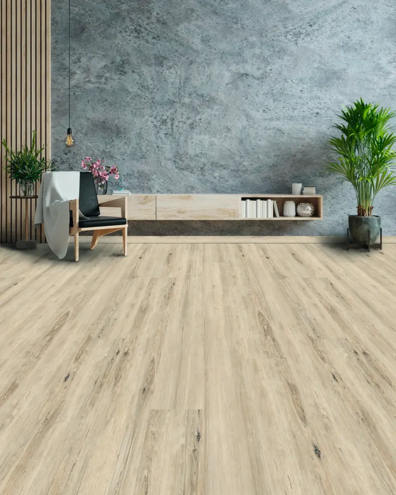 Der Ziro Naturalan Oak Cairns Designboden überzeugt mit seiner attraktiven Holzoptik im hellen, beigen Farbton und einem lebhaften Eichen-Dekor. Das Langdielenformat und die ausgeprägte Holzstruktur schaffen ein authentisches und elegantes Landhausdielen-Ambiente in Ihren Räumen.